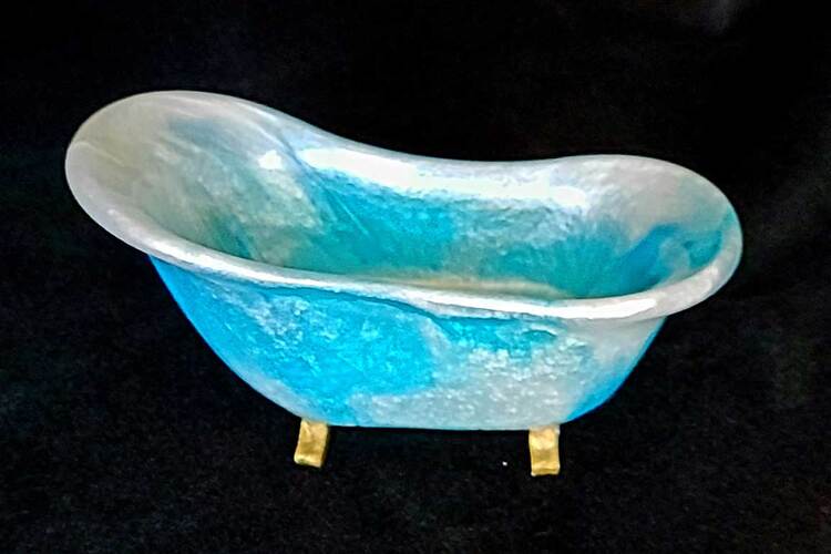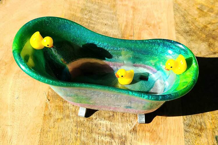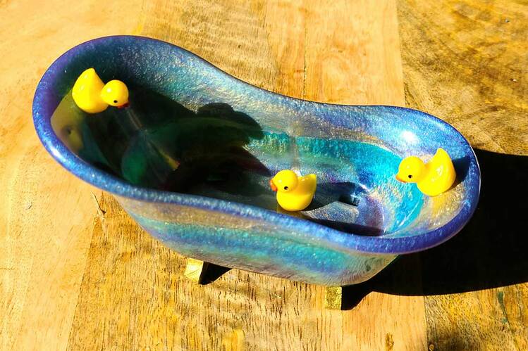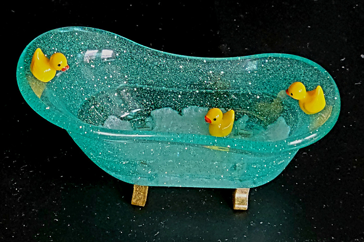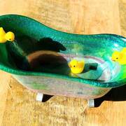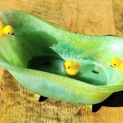 Adorable bathtub with 3 little ducks. Can be used as a soap dish holder, jewelry holder or for misc. items & trinkets. Approx. dimensions - 6" x 3" x 2.25"