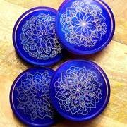 Various themed Coaster Sets. Includes a set of 4 coasters. Shape of coaster sets vary with some round and some square. All have a cork backing applied to help with moisture absorption, surface protection, and slippage prevention on surface. Includes choice of 1, (one) set of 4. Specify which set you would like in your order. Approximate Sizes: