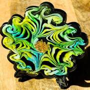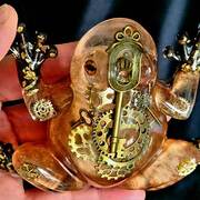 Clear Frog with turquoise blue, cobalt blue, and clear marbles. Sparkly toes with gold or silver stones! Clear Frogs with tones of blue shades of marbles embedded into the resin. Choice of 1, (one) Frog. Very cool! They look especially amazing when near a window, light source, lit from beneath or with light coming from behind. Price is for 1, (one) frog. Approximate Size = 5.25"x4"x1.33"